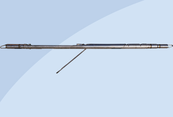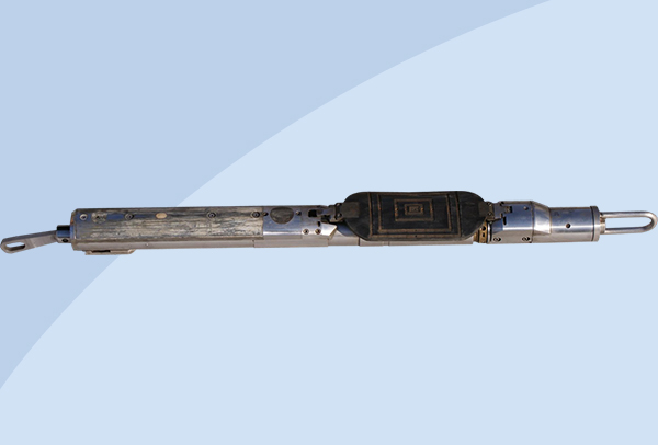 液壓推靠器配接能譜密度與微球復(fù)合探頭,使其貼靠井壁以滿足測(cè)…